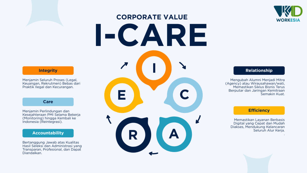 -> Workesia menjalin dan memanfaatkan kemitraan dengan lembaga, perusahaan, dan pemerintah di negara tujuan.